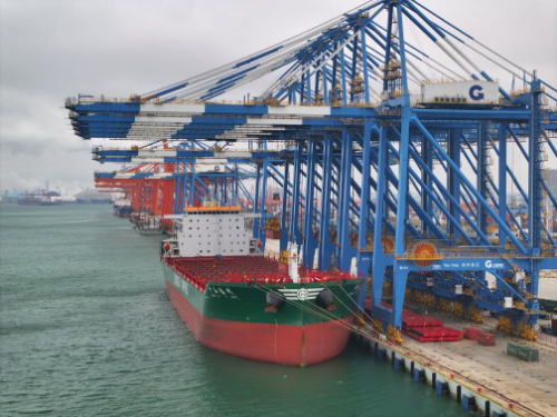 2月23日拍摄的广西北部湾港钦州港区的码头堆场(无人机照片)。